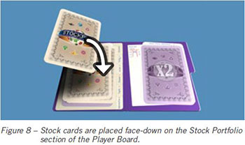 Note: Stock cards obtained during the game should be kept secret from other players. A player may look at which stocks he/she has at any time.