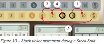 Note: A player will receive twice the dividends for stock in his/her Split Portfolio. A player must reveal shares of stock to receive the dividends for it. He/she may choose not to collect on some or all of that stock to avoid revealing how many shares they have.