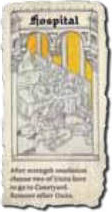 All Defender Units which die this Turn are placed in the Hospital. At the end of each Turn two of these Units (Defender's choice) recover and are moved to the Courtyard. The rest of the Units at the Hospital go back to Supply.