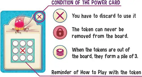 The game comes with 12 Power cards. You can choose up to 2 cards during setup to create a unique experience, which adds to the basic rules and the modifies gameplay with additional tokens! To play with Power cards, follow these steps: