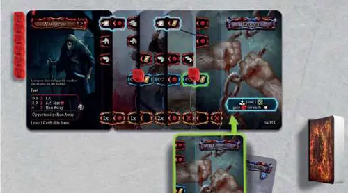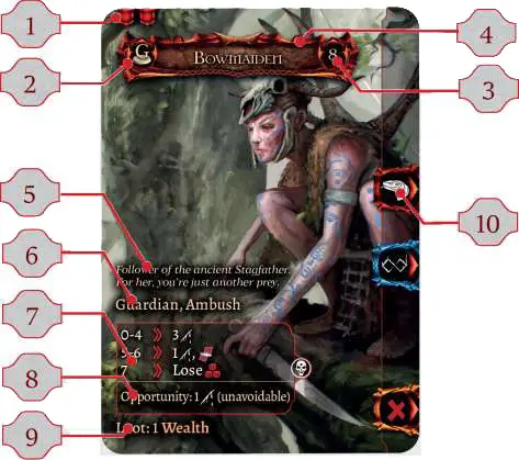 Ability. The text part of the card containing special rules, with various timings. Only Abilities that are visible (and are not covered by other cards in the Sequence) are considered active. Passive cards (see below) are never covered, so their Abilities remain in play throughout the Encounter.