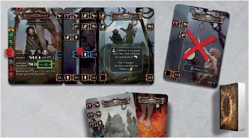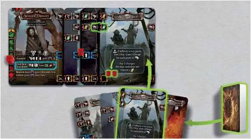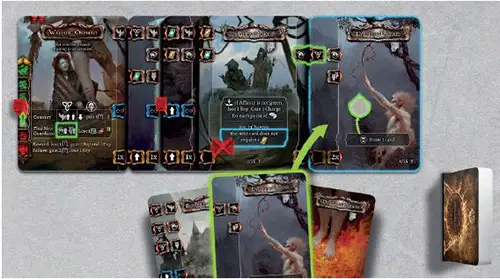 Ability. The text part of the card containing special rules, with various timings. Only Abilities that are visible (and not covered by other cards in the Sequence) are considered active. Passive cards (see below) are never covered, so their Abilities remain in play throughout the En- counter.