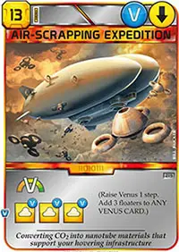 A new standard project, Air Scrapping, allows players to increase the Venus scale one step for 15 M€, gaining a TR as normal.