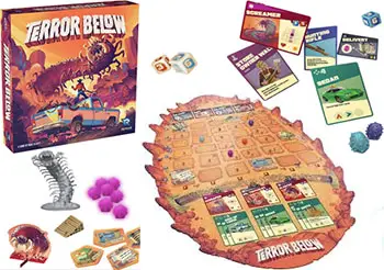 The goal of Terror Below is to be the first player to score 20 Victory Points (VP) by collecting Worm Eggs and delivering them to Locations around town. Or alternatively, by hunting down and killing those vicious Worms.