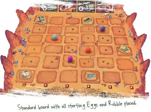 Be sure to add an Egg and the appropriate Rubble to the board. Since they are attacking, there is no need to place any Target tokens.