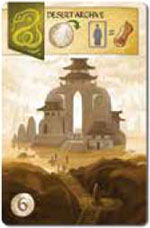 Archivists of Bol: Gain 1 coin at the end of each round. Also, when you buy this card, you may immediately return any 1 of your citizen tokens to the supply and take the next citizen in numerical order from the supply. Place the upgraded citizen token where the discarded citizen was located.