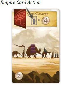 The player pays the cost in coins and knowledge to the supply and places the empire card to the right of their player board (in the bottom row of cards). Empire cards give bonuses and abilities, described in the sections "Card Abilities" on page 14.