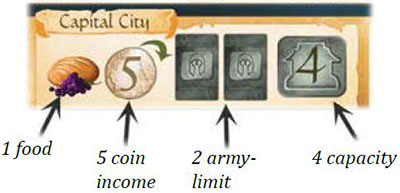 The Capital City on each player board contains some of the resources that each player starts with. The capital city cannot be damaged by a Titan.