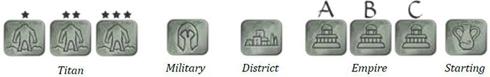 Titan cards grant abilities, tribe banners, and capacity when defeated. In story terms, this represents that when a city-state defeats a titan, more tribes flock to the capital, and new lands open up for development.