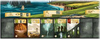 Shuffle the empire A deck and place it face down on the building symbol on the board. Draw cards and place them face up in a row to the right with: 4 cards for 2 players, 5 cards for 3 players, and 6 cards for 4 players.