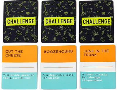 Performers may not say any of the white colored words in the definition of a CHALLENGE card - as well as any part of the word or phrase being guessed.