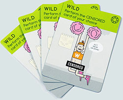 When a performer draws a WILD card, the performer searches through the CENSORED card deck and chooses any CENSORED card they wish to perform.