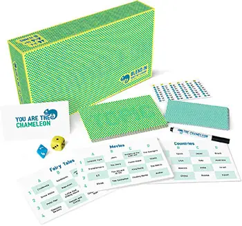 Gather 4-6 players. Shuffle the Blue Chameleon Card into the matching set of Code Cards and deal one to each player, face down. One of you is now the Chameleon. Stay cool, blend in and don't get caught.