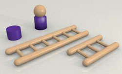 A Climber can freely climb a difference of height 1 (equal to the height of a horizontal Size 1 block). To overcome a distance greater than a height of 1, a ladder is required!