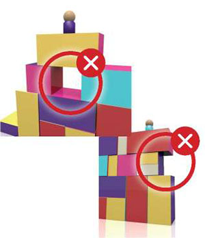Holes and overhanging blocks are not allowed! Blocks must have full contact of their bottom side with the block(s) under- neath.