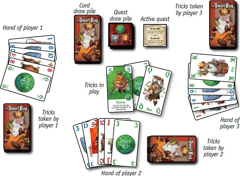 3-player game: the 2 of Dwarves is permanently removed from the game. Each hand is played with the remaining 38 cards and a special card.