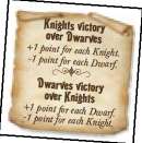 Example: The victory condition chosen for this hand is: "Knights victory over Dwarves: +1 Point per Knight, -1 point per Dwarf".