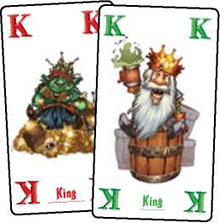 Shuffle the tiles, the 39 basic cards and the 14 special cards separately. A game of King of Dwarves is played in seven hands.