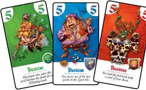 - 5 of Dwarves: the player who took it in the previous hand is the dealer for the next hand, and draws the special card.