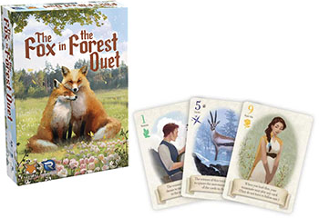 The Fox in the Forest: Duet is a trick-taking game for two teammates. Each round, you can collect gem tokens by moving along the forest path. Work together to collect all the gem tokens, without running out of time or getting lost in the forest!