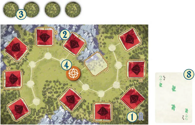 Set the forest board on the table between the players with Side A face-up, oriented so that each player is facing one end of the forest path. (Side B provides ways to increase the difficulty).