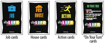 Cards with this symbol let you sabotage another player. If you choose to do the dare on a card, you get to give that card to the player of your choice-they then must do the action (pay, get divorced, etc). instead of you.