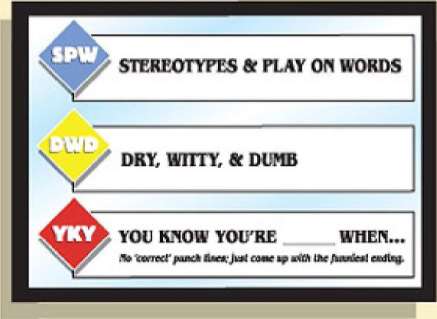 TEAM PLAY - If there are more than six players, teams can be formed (no more than, two players per team), just partner up with another player, follow the same rules (one punch line per team), combine brain power and humor, and try not to argue!