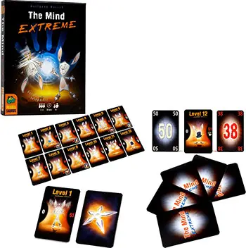 The basic rules of the original "The Mind" game are the same. In the first round (level 1) everyone gets 1 card, in the second round (level 2) everyone gets 2 cards, etc. Everyone forms one team and tries to lay all the cards they receive correctly in the middle of the table.