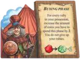 Action: During the Buy Chips Phase, use this herb witch to increase the amount of coins you have by 2 for each ruby you possess. You do not give up your rubies.