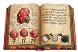 Note: If the Fortune Teller card "The Pot is Full" is in effect, every player with a green chip in the last or next- to-last space in their pot can roll the bonus die twice for each of these chips.