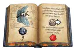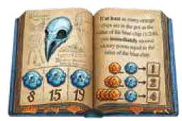 Similar to The Quacks of Quedlinburg, the actions of the following books always become effective after all players have stopped drawing chips (whether by choice or by their pot blowing up). These actions are carried out consecutively in Evaluation Phase B: Chip Actions.