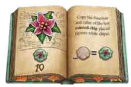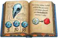 Example: When you place a blue 4-chip, check how many white 1-chips are among the four chips directly before it. For each white 1-chip, you receive 1 ruby. If you place a blue 1-chip, check only the chip directly before the blue chip.