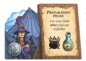 Action: During the Potions Phase, if your pot has exploded, use this herb witch to activate your flask.