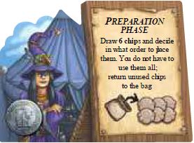Action: During the Victory Point Phase, use this herb witch to get bonus victory points for the chips remaining in your bag.