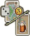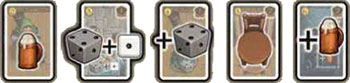 Each player may choose between the following 2 bonuses: Either he takes a Die in his player color, rolls it and places it below his Tavern Board for use in this Round, or he takes a Dishwasher card and places it face down on the top of his draw deck.