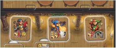 In Rounds 2, 3 and 5, thirsty Entertainers will visit your Tavern to entertain your Guests. Each player takes the pictured Entertainer Tile and chooses 1 of the 2 sides.