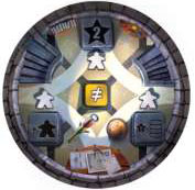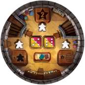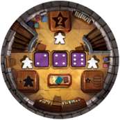 Take the top floor tile from the tile stack and place it on top of the meeples and dice on the tower floor. (Remember-if it's an outer tower, place the outer side up, and if it's the central tower, place the central side up).