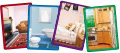 There are four different empty rooms in the house: a kitchen, living room, bedroom and bathroom. During your turn, try to give one of these cards to another player.