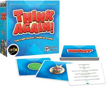If the player who answered first gave a CORRECT answer (wrong or right, depending on the back of the top card of the deck), he earns 1 point.