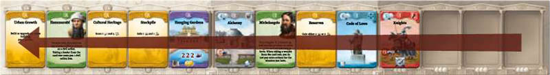 Note: The starting player is the one who makes the transition from Age A to Age I, but for the rest of the game, there will be nothing special about the starting player's turn. You always begin your turn by replenishing the card row, even if you are not the starting player.