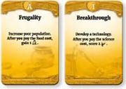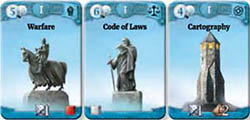 Technology cards come in various colors. Each has a blue number in the upper left corner representing its science cost. You may take any technology card by paying the number of civil actions specified by the card row. There is one minor limitation: