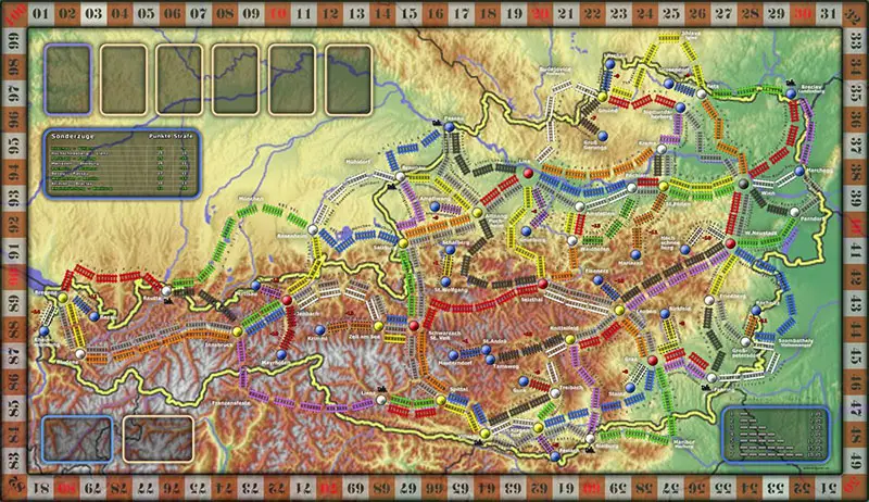 The nine longest of these Tourist Paths ("Sonderzüge") are listed separately on the game board. The reason for this is that a player might employ a targeted tactic to prevent opponents from completing these paths.