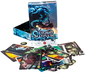 The goal of Tides of Madness is to score the most Victory Points (VP), earned by developing your knowledge of the Ancient Ones during the game. You must, however, beware the madness! If you have 9 or more Madness tokens (