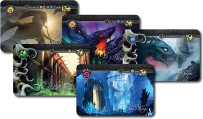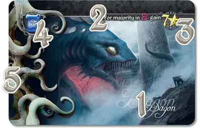 Scoring example: At the end of the first round you have the following cards: Nyarlathotep, Azathoth, Dagon, Pnakotic Manuscripts, and Elder Things.