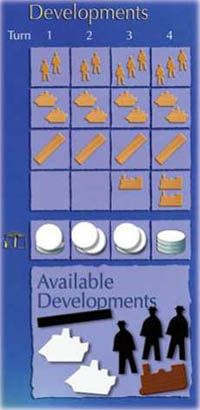 Each turn a certain number of developments will be available to be selected as actions by the players.