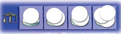 Example: The Steam Pump display looks like this at the beginning of the fourth turn. If you select the Improve Steam Pumps action you can take the stack of three steam pump discs.