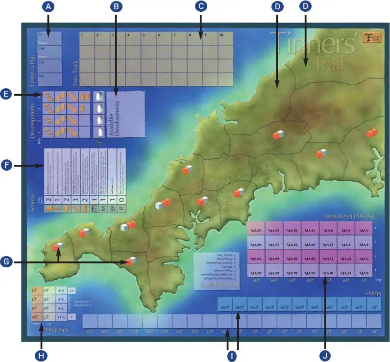 G Starting areas. These areas start with tin and copper cubes in them. You also roll the dice to generate additional cubes for each of these areas at the start of the game.