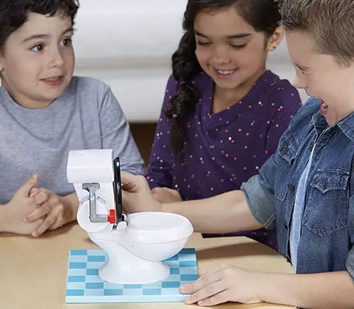 If you only hear a flushing sound but no water is sprayed when you flush, you are safe, and it's the next player's turn. If you get sprayed by the gush of water, you're out!
