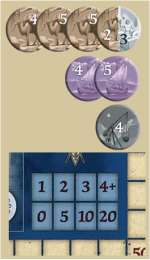 If a player has a two-colored disc, he must choose which color to score it as; it does not score for both colors. Players record their victory points by moving their counters on the victory point track.