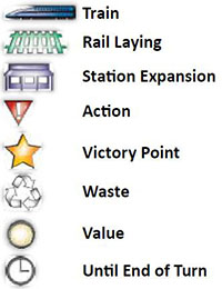 | Other Player's Rail token | ![]() | # of rail tokens + gain a ![]() |